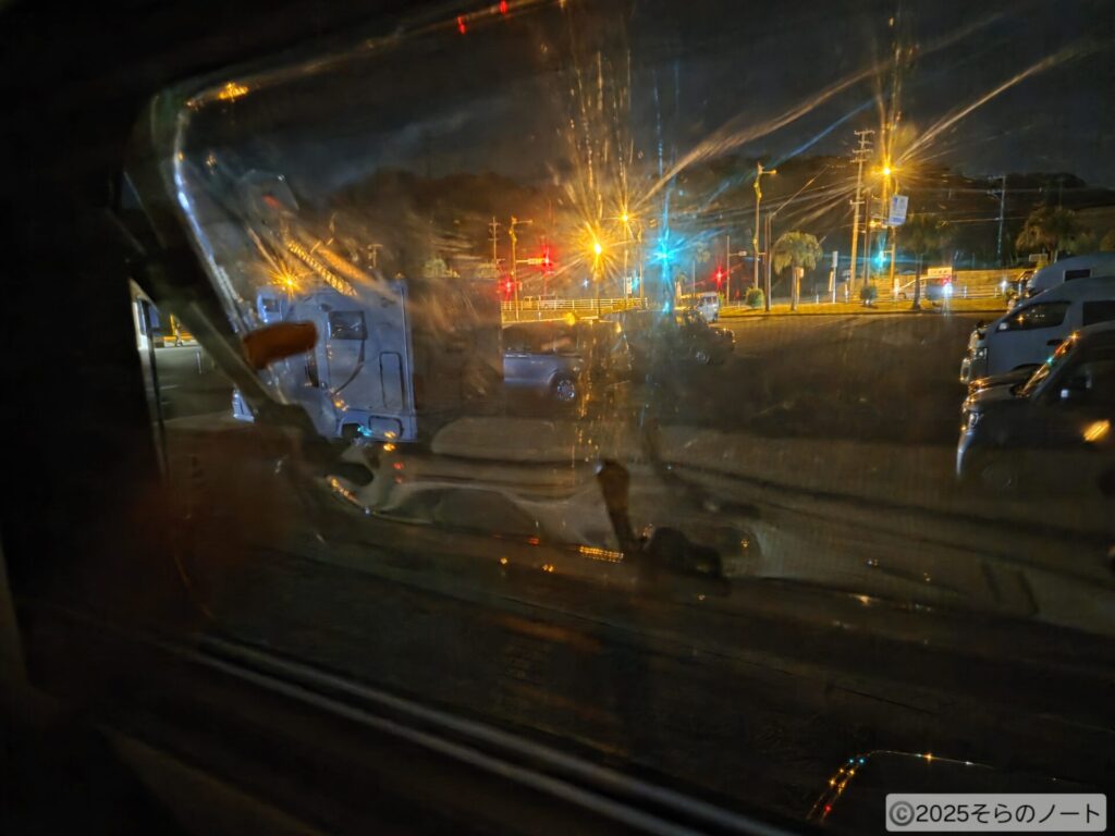 お風呂と夕食、洗濯を済ませて車中泊の準備をしました。