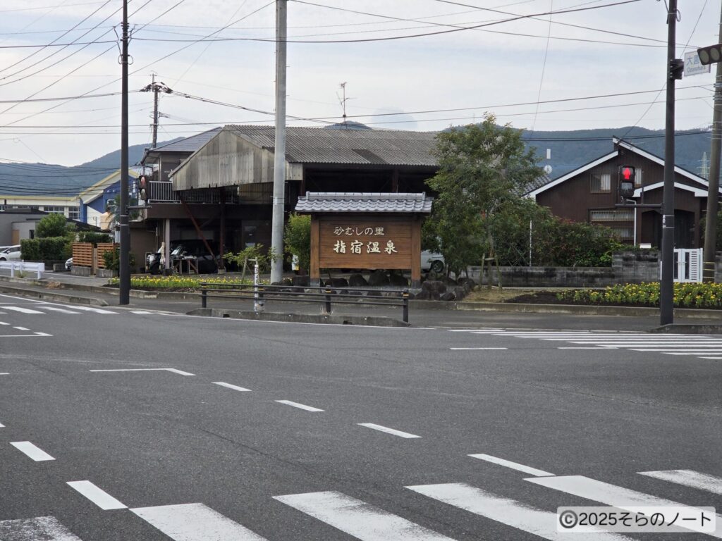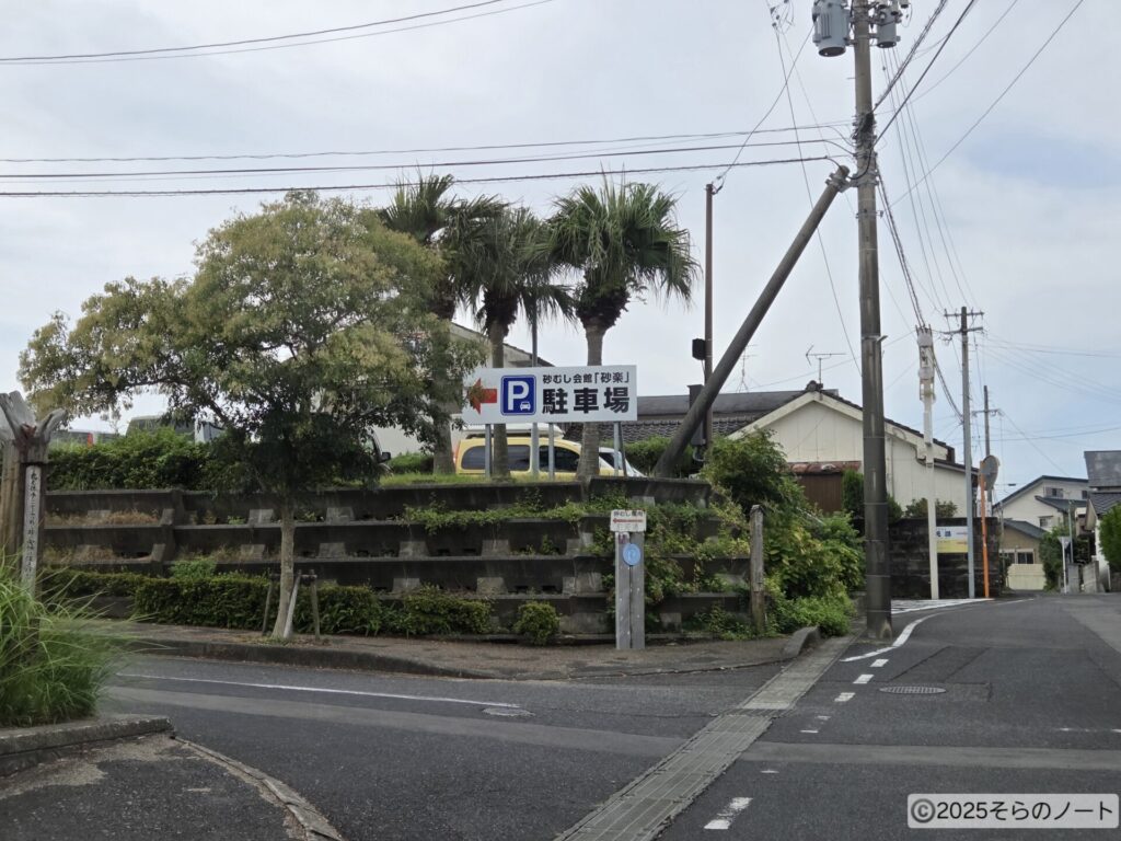 駐車場から砂むし会館までは歩いて2~3分ほど。(距離にして140m)