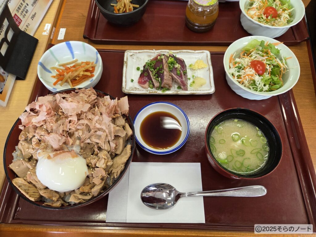 私は「鰹漁師のレトロ温たまらん丼とかつおのたたきセット」を注文♪1,300円♪