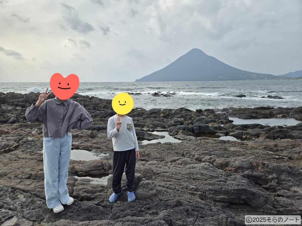 開聞岳(かいもんだけ)が見えるところで写真を撮っていただきました(*^^*)(感謝!)