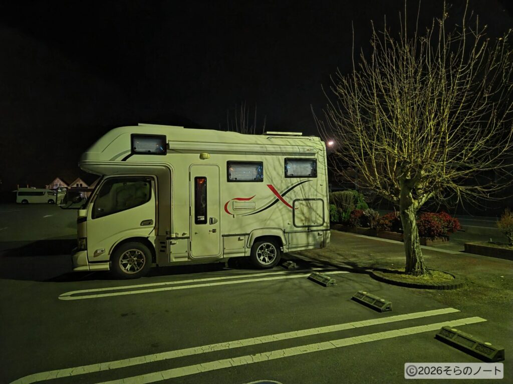 家に到着したのは深夜2時過ぎだったため、そのまま車中泊をしました