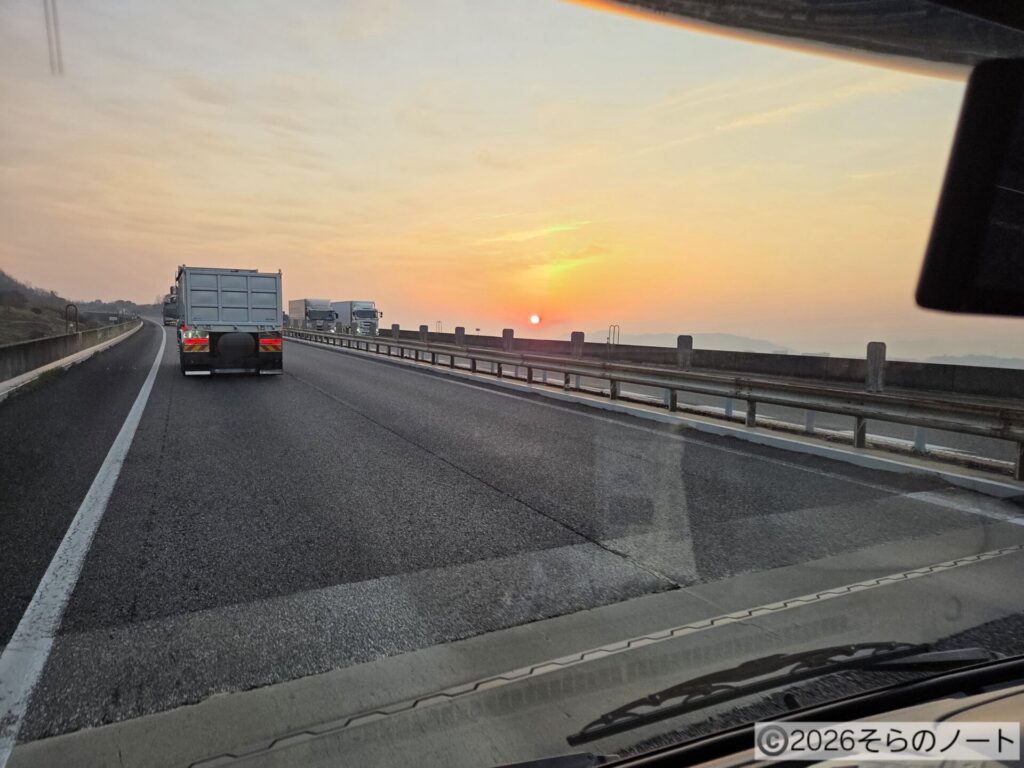 運転中に朝を迎えました