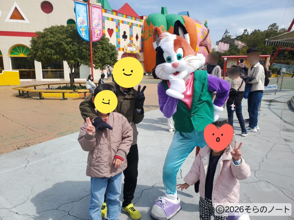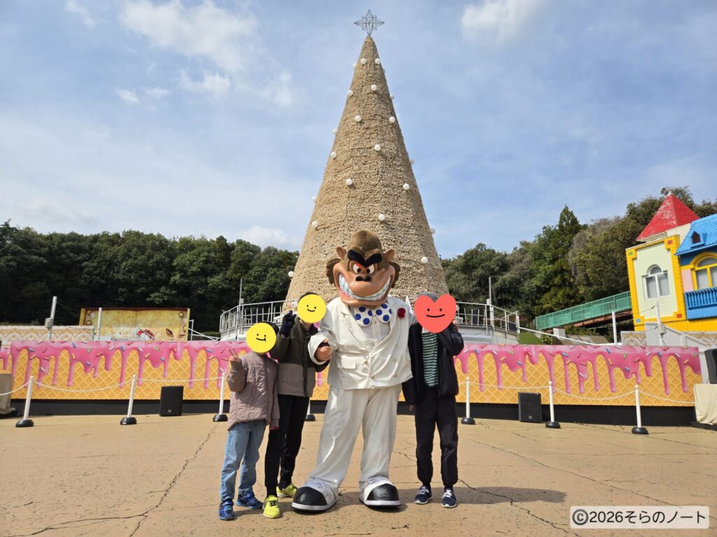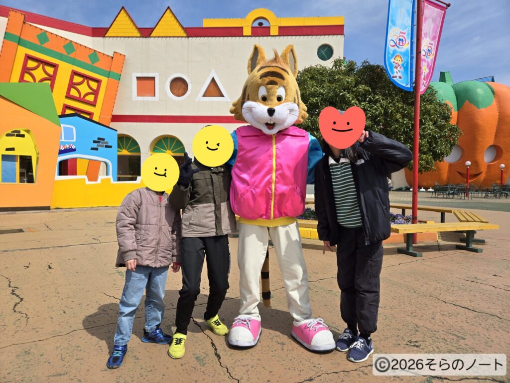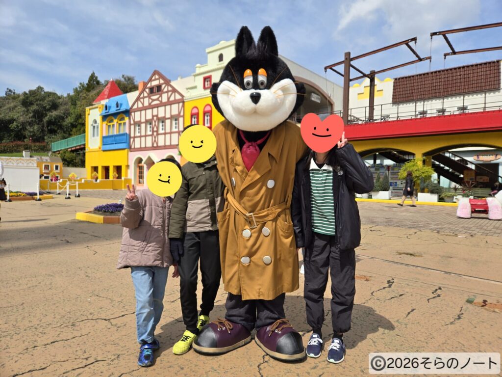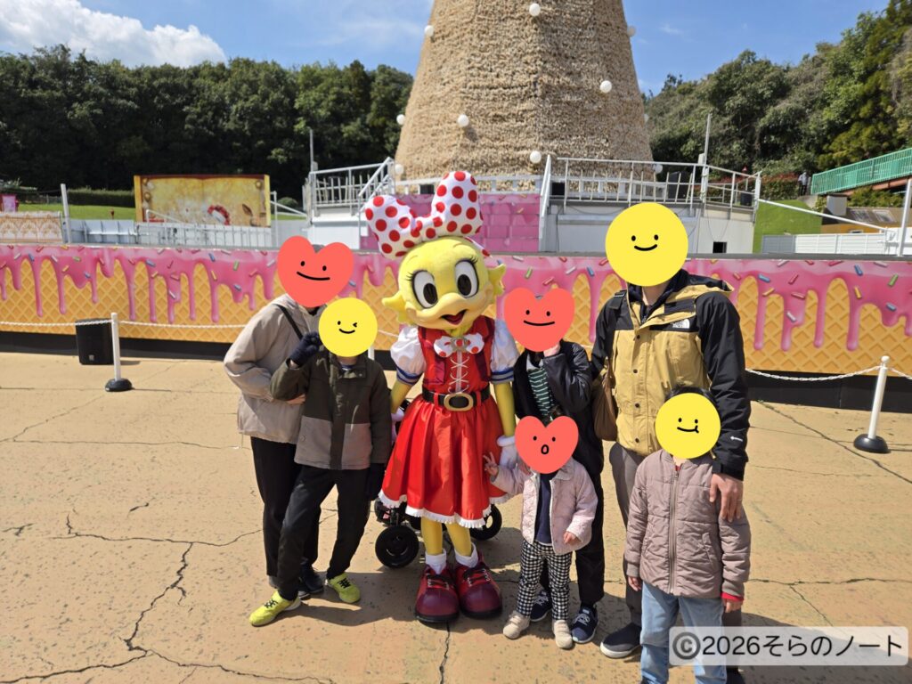 外に出ると、レオマワールドのキャラクターたちがいっしょに写真を撮ってくれました☆