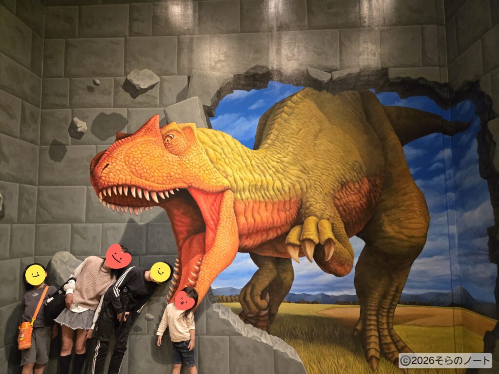 中でも面白かったのが、恐竜のトリックアート