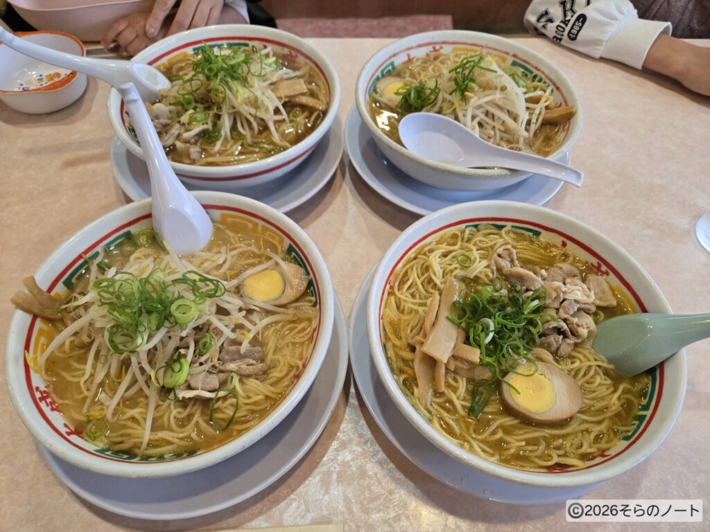 ラーメンは、みそラーメン・しおラーメン・しょうゆラーメン・カレーラーメンを注文